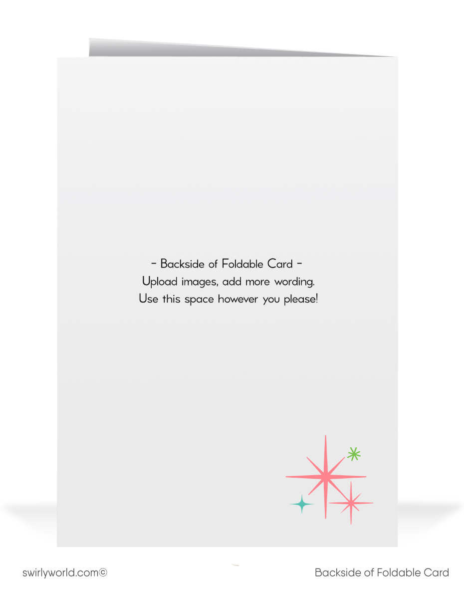 Our cards pop with authentic mid-century typography that brings the retro vibe to life, adding a one-of-a-kind charm to your holiday greetings. Make it personal with a custom message on these unique cards and envelopes for a warm, memorable touch. Printed on premium matte stock, these cards are all about quality and aesthetic, ready to impress.