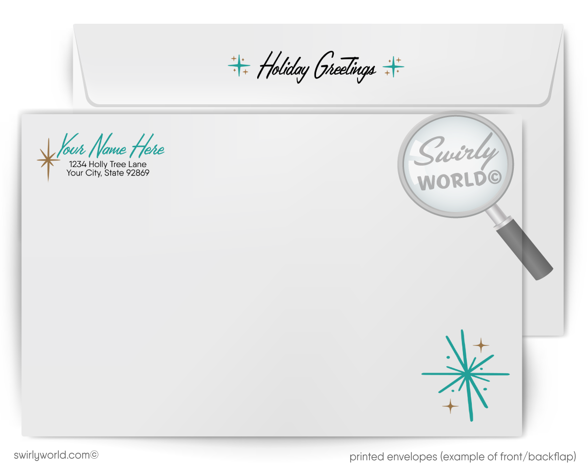 Add this exclusive retro holiday greeting to your collection or gift it to loved ones who appreciate mid-century style. The combination of atomic era Christmas cards design elements with premium materials ensures your holiday message makes a lasting impression year after year.