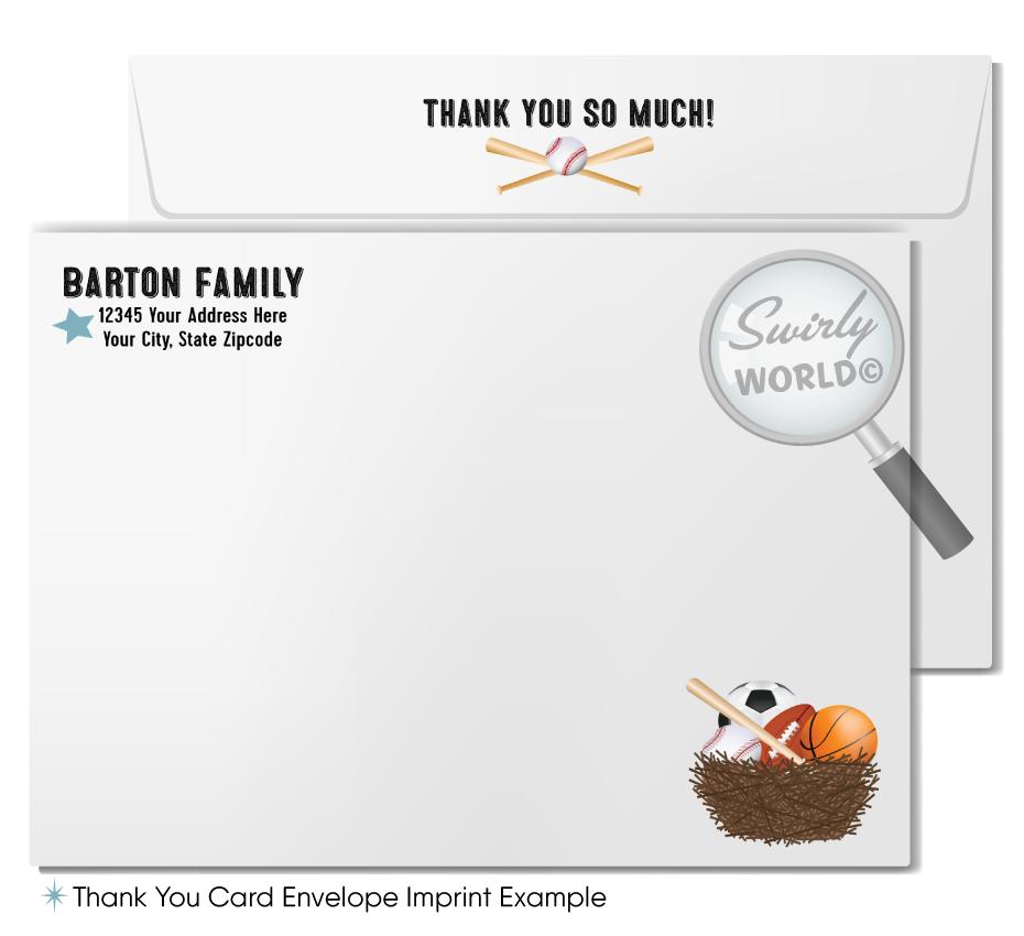 Score big with our All-Star Sports "It's a Boy" Couples MVP Football Baseball Baby Shower Invitation and Thank You Card Printed Bundle. This exclusive set is perfect for sports enthusiasts and future MVPs alike, making it an ideal choice for celebrating the newest addition to your team.