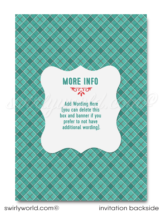 Step into a whimsical winter wonderland, where enchantment meets elegance. Our holiday party invitation features a serene woodland forest draped in a winter wonderland landscape, setting the stage for an unforgettable gathering.