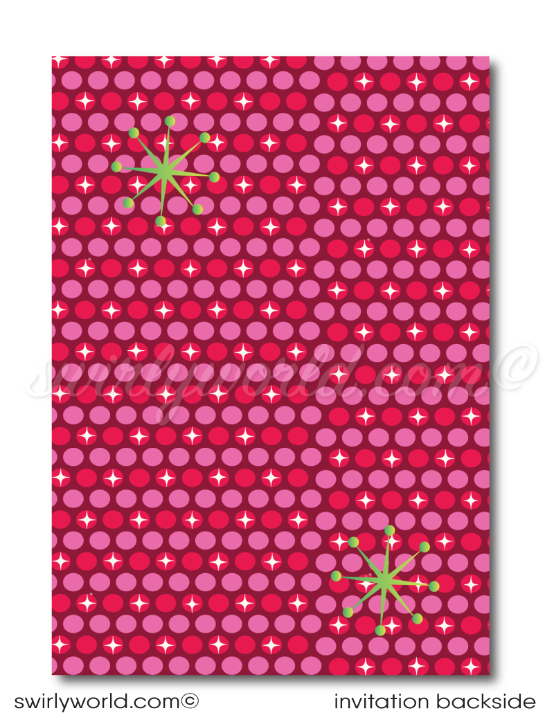 For an added touch of sophistication, upgrade your invites with our custom printed matching envelopes. Celebrate the magic of the season in style, and if you adore the timeless appeal of 1950s MCM vintage design, these invitations are tailor-made for your upcoming festivities. Make a statement with invitations that reflect your unique style and leave a lasting impression on your guests.