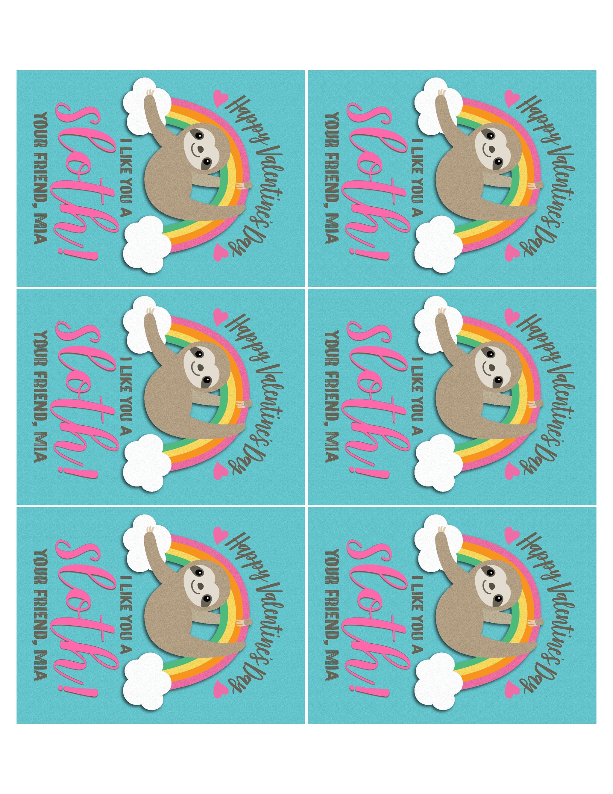 Fall in LOVE with this adorable gender neutral unisex digital printable "I like you a Sloth" Valentine's day card!