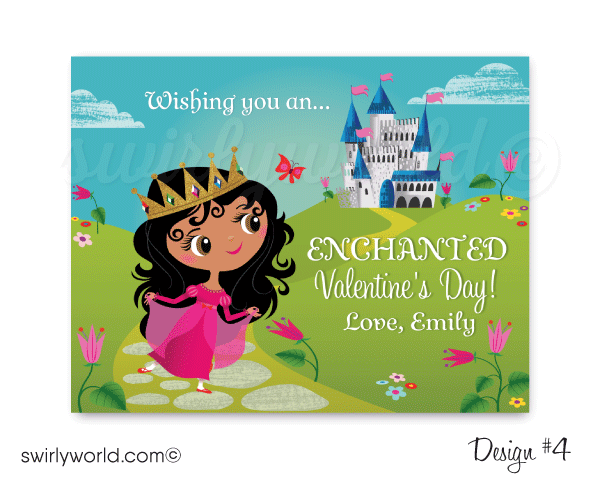 Fall in LOVE with this adorable enchanted royal princess theme digital download printable Valentine's Day cards.