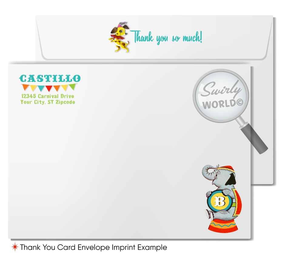 1950's Retro Vintage Circus Carnival Baby Shower Invitation and Thank You Card Set