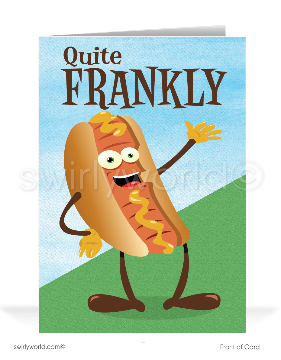 This Hot Dog Puns Funny Customer Thank You Cards set offers an extraordinary way to thank your clients. Each card contains a uniquely designed Hot Dog illustration and a witty message to demonstrate appreciation and show customers that their patronage is valued. As the cards are printed and shipped directly to you and they are ready for use right away.