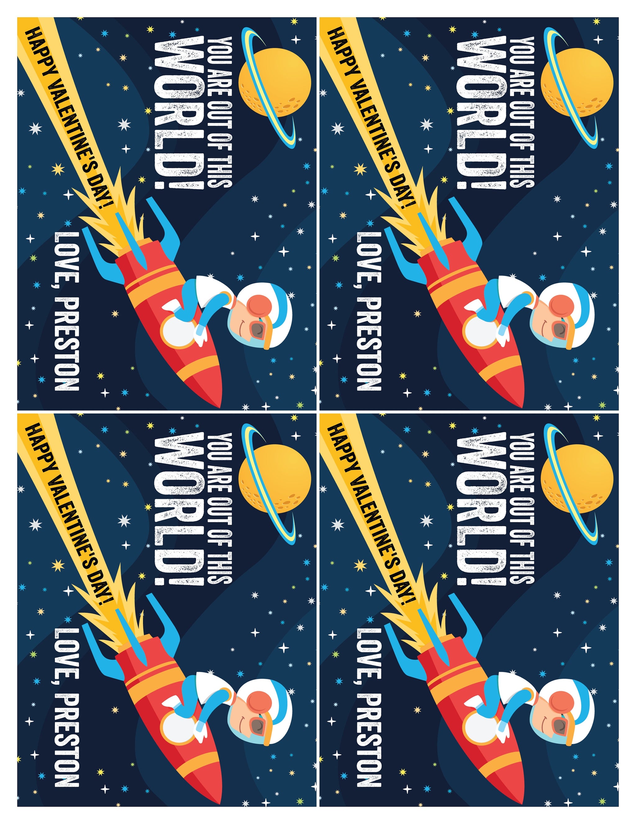 Space NASA astronaut rocket ship outer-space boys Valentine Cards for school classroom digital download.