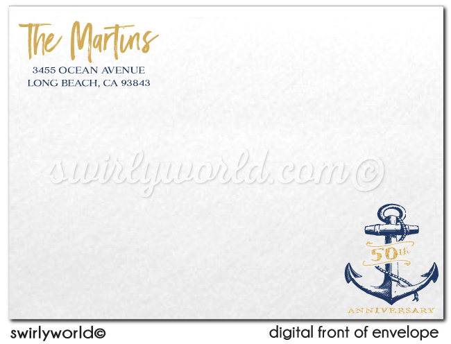 This elegant Cheers to 50 Years Gold Wedding Anniversary Party invitation design is sure to impress your party-goers. Celebrate this major milestone with these beautiful and unique Wedding Anniversary Party invites.