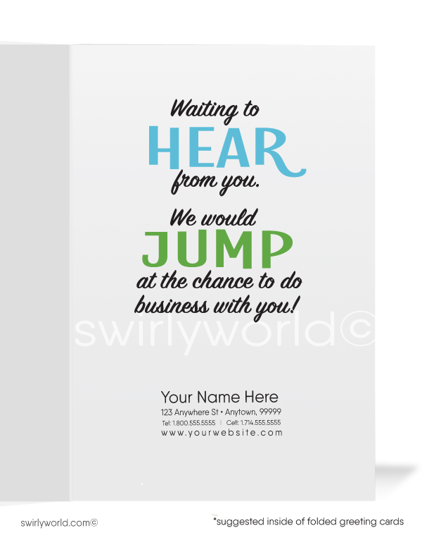 Suggested Inside Message: Waiting to hear from you! We'd JUMP at the CHANCE to do business with you!