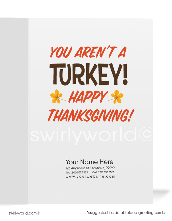Enjoy a seamless experience as we handle the printing and shipping directly to your doorstep, allowing you to focus on making this Thanksgiving special for your customers. Share your appreciation with our charming and humorous greeting cards, creating a lasting memory this holiday season.