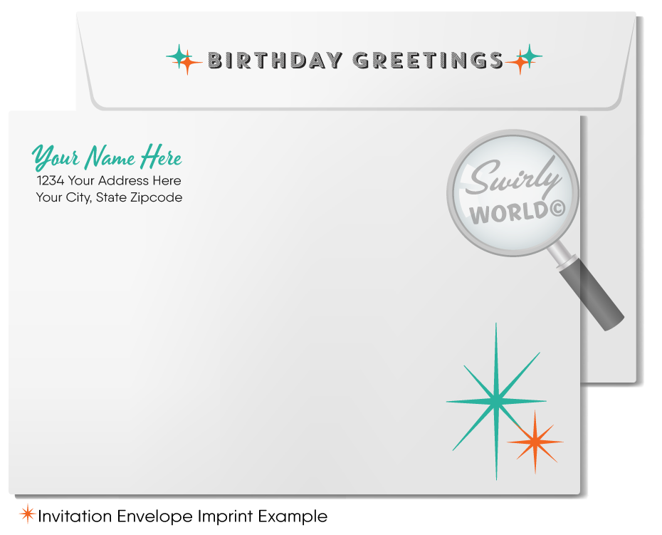 This retro modern style Happy Birthday card combines vintage charm with a professional look. The design features retro-style typography spelling "Happy Birthday," against a striking orange patterned background. All wording is customizable to meet your needs.