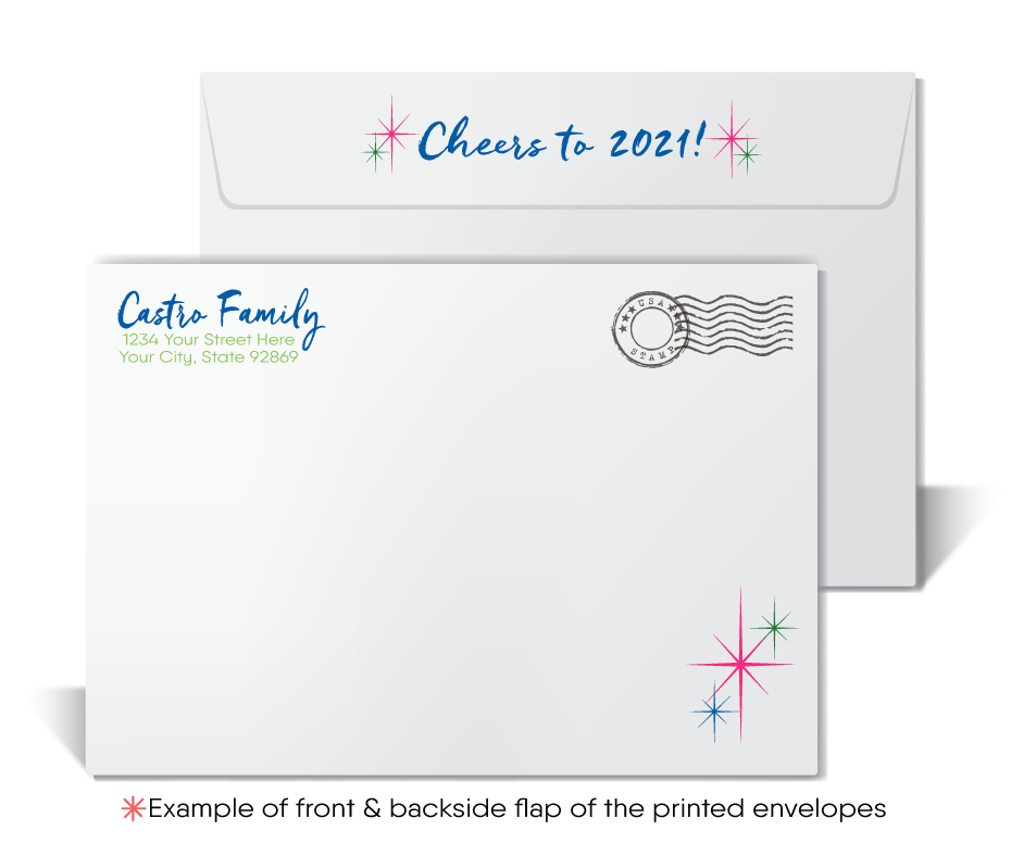 Choose between a sleek single-panel flat card or a classic folded option for a timeless look. Both come with matching white envelopes, with an option to upgrade to custom imprinted envelopes featuring your name, return address, and coordinating design elements. Let these distinctive, retro holiday cards make a lasting impact and elevate your holiday greetings.