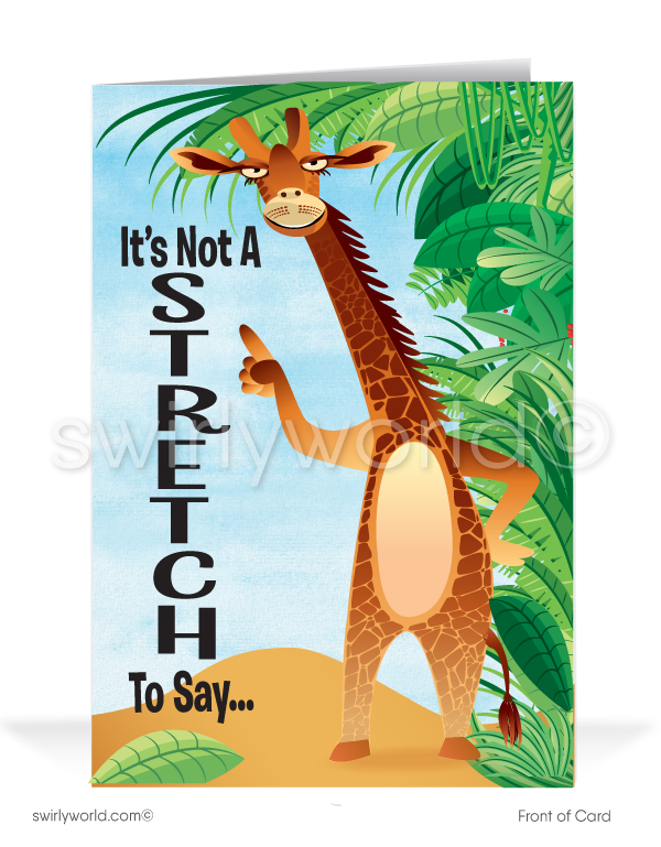 Elevate customer appreciation with these funny Giraffe animal thank you cards. Featuring a distinctive cartoon design, these cards bring a unique touch that creates a lasting impression. Enjoy the convenience of having them printed and delivered to your doorstep, leaving your customers feeling valued and grateful.