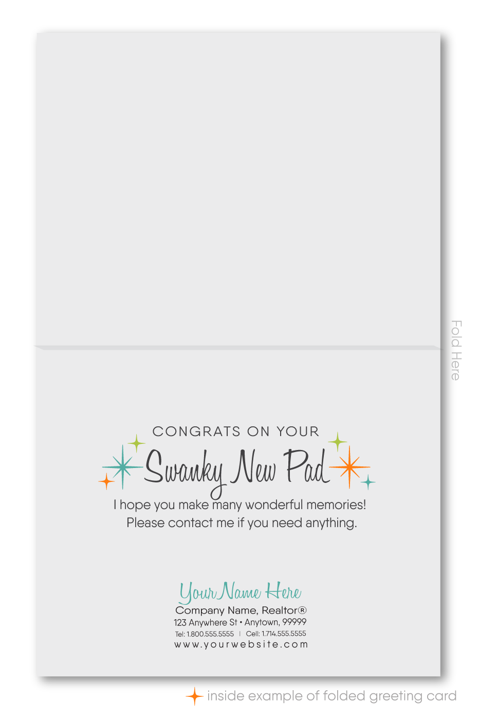 Stay connected with clients in style with our retro, mid-century modern notecards, featuring an iconic atomic ranch home inspired by the legendary Eichler designs. Perfect for realtors, these notecards beautifully blend appreciation for mid-century aesthetics with professional communication. Ideal for sending thank you notes, good luck wishes, or congratulations on a home purchase, these cards add a touch of vintage charm to your messages.