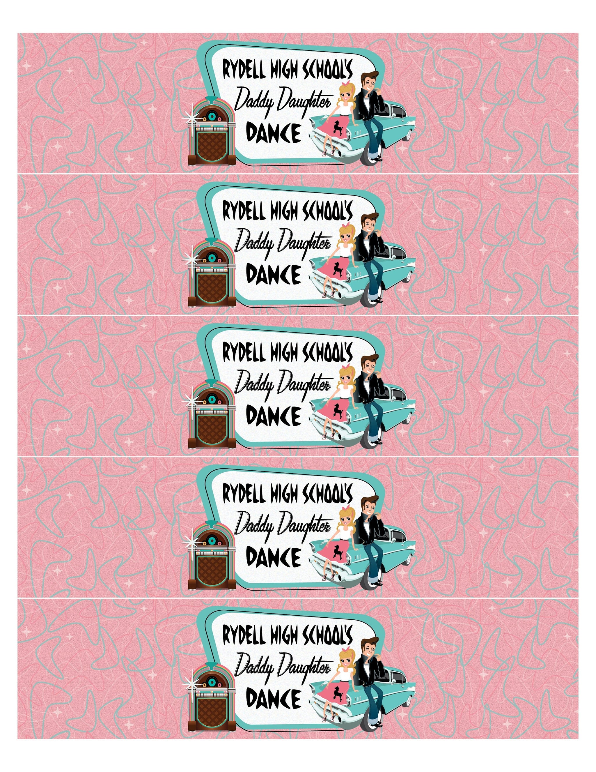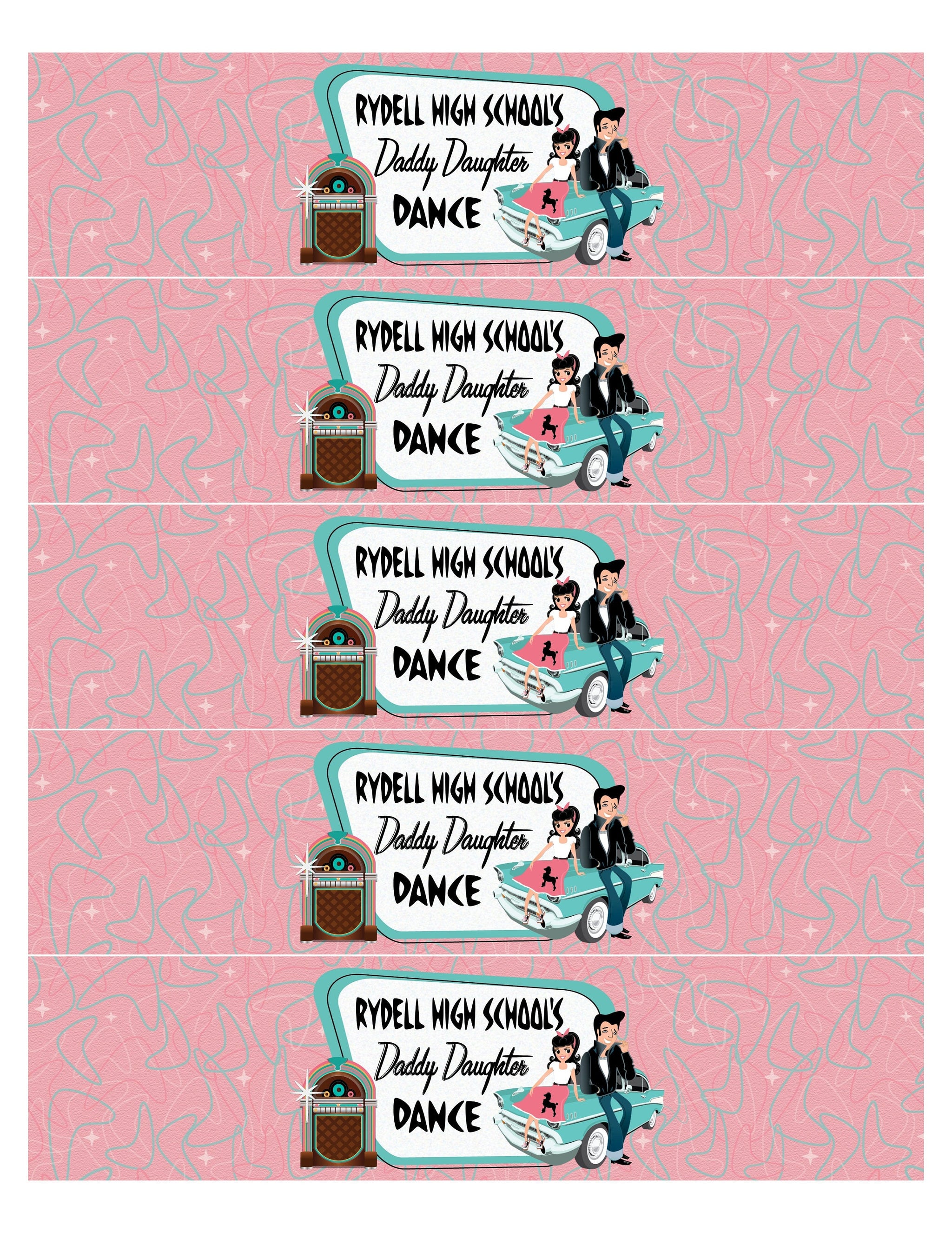 1950s Retro Sock Hop Jukebox Pink Ladies Father Daughter Dance Party Water Labels