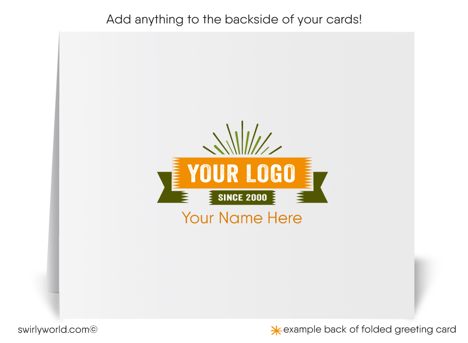 Our notecards are available in two options: the classic old-school folded greeting card and the budget-friendly single-paneled "Flatcard." Each card is expertly printed on thick 16pt card stock for a premium feel. All cards come with blank white envelopes, but you can upgrade to custom printed envelopes featuring your name, return address, and logo for an extra touch of personalization. Additionally, all wording on the notecards is fully customizable, allowing you to tailor each message to suit your needs.