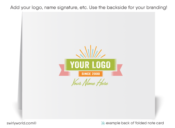 We expertly print on thick 16pt card stock, ensuring a premium feel that complements the vintage design. Each card comes with a blank white envelope, ready for your personal message. Choose from the classic old-school folded style greeting card or opt for a budget-friendly single-paneled "Flatcard" option. For an added touch of personalization, upgrade to custom printed envelopes featuring your name, return address, and logo. Whether you're sending thanks to friends, family, or clients, our retro mid-century modern Thank You card delivers a heartfelt message with a stylish flair.