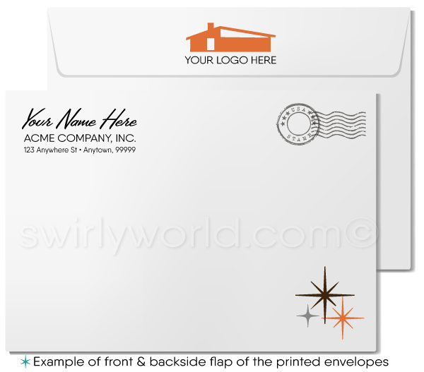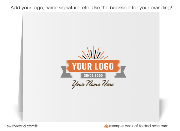 We expertly print on thick 16pt card stock, ensuring a premium feel that complements the vintage design. Each card comes with a blank white envelope, ready for your personal message. Choose from the classic old-school folded style greeting card or opt for a budget-friendly single-paneled "Flatcard" option. For an added touch of personalization, upgrade to custom printed envelopes featuring your name, return address, and logo. Whether you're sending thanks to friends, family, or clients, our retro mid-century modern Thank You card delivers a heartfelt message with a stylish flair.
