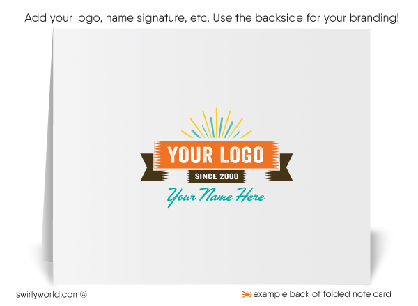 We expertly print on thick 16pt card stock, ensuring a premium feel that complements the vintage design. Each card comes with a blank white envelope, ready for your personal message. Choose from the classic old-school folded style greeting card or opt for a budget-friendly single-paneled "Flatcard" option. For an added touch of personalization, upgrade to custom printed envelopes featuring your name, return address, and logo. Whether you're sending thanks to friends, family, or clients, our retro mid-century modern Thank You card delivers a heartfelt message with a stylish flair.