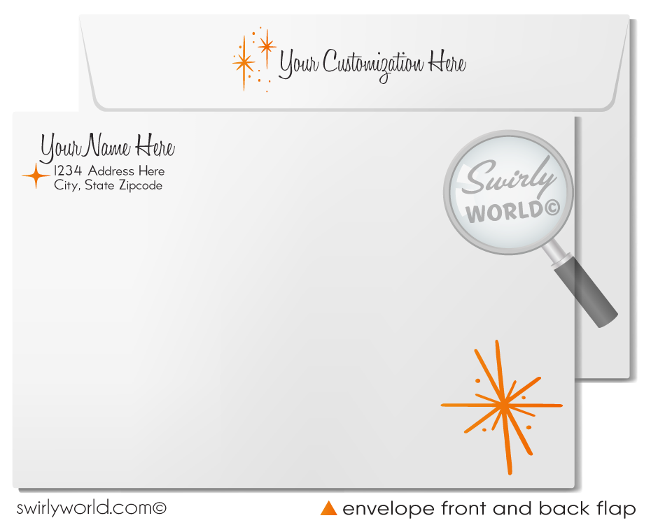 Printed on thick 14pt cardstock, it offers a premium, high-quality feel that complements the nostalgic aesthetic. Each card is paired with a blank white envelope, perfect for adding your personal touch. Choose between the classic folded greeting card or a more budget-friendly single-panel "Flatcard" option. For a personalized finish, upgrade to custom printed envelopes that can feature your name, return address, and logo. Whether thanking friends, family, or clients, this retro mid-century modern Thank You card sends your heartfelt message with vintage elegance.