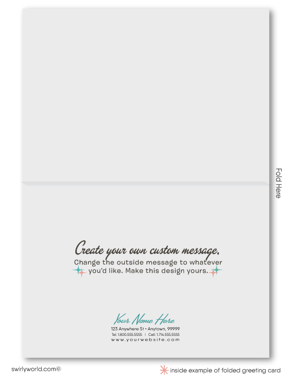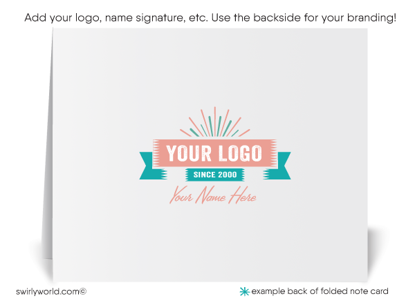 We expertly print on thick 16pt card stock, ensuring a premium feel that complements the vintage design. Each card comes with a blank white envelope, ready for your personal message. Choose from the classic old-school folded style greeting card or opt for a budget-friendly single-paneled "Flatcard" option. For an added touch of personalization, upgrade to custom printed envelopes featuring your name, return address, and logo. Whether you're sending thanks to friends, family, or clients, our retro mid-century modern Thank You card delivers a heartfelt message with a stylish flair.