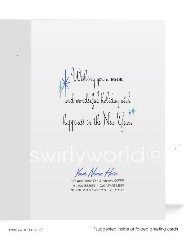 Our cards pop with authentic mid-century typography that brings the retro vibe to life, adding a one-of-a-kind charm to your holiday greetings. Make it personal with a custom message on these unique cards and envelopes for a warm, memorable touch. Printed on premium matte stock, these cards are all about quality and aesthetic, ready to impress.