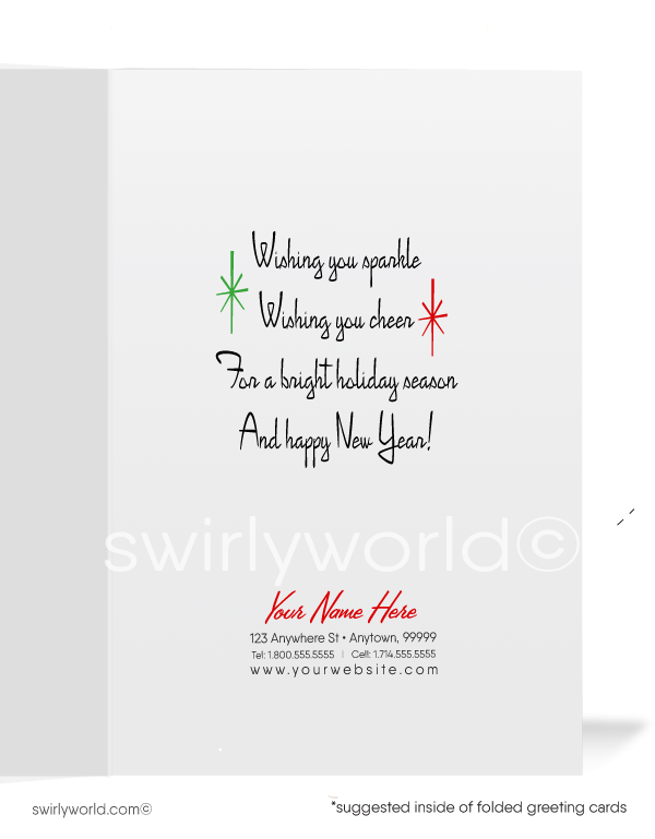 Our cards pop with authentic mid-century typography that brings the retro vibe to life, adding a one-of-a-kind charm to your holiday greetings. Make it personal with a custom message on these unique cards and envelopes for a warm, memorable touch. Printed on premium matte stock, these cards are all about quality and aesthetic, ready to impress.