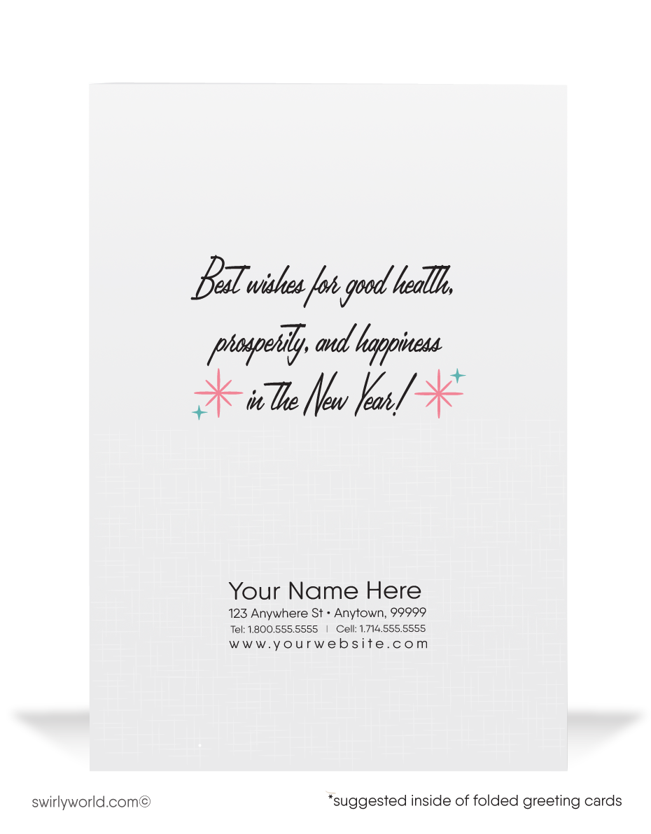 Our cards pop with authentic mid-century typography that brings the retro vibe to life, adding a one-of-a-kind charm to your holiday greetings. Make it personal with a custom message on these unique cards and envelopes for a warm, memorable touch. Printed on premium matte stock, these cards are all about quality and aesthetic, ready to impress.