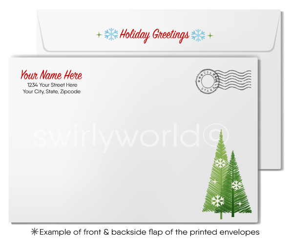 Traditional Retro Style Christmas Tree Forest Season's Greetings Holiday Cards for Business