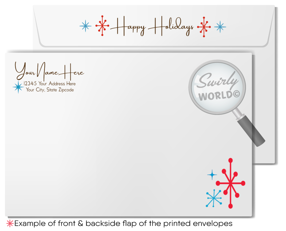 This vintage mid-century Christmas card has been crafted by Swirly World Designs, known for their attention to detail and commitment to quality. Customers appreciate the prompt production timeline—expect delivery within one week after proof approval—ensuring your holiday cards arrive on time. Whether you are sending 1950s vintage holiday cards for personal use or seeking standout corporate holiday greeting cards, this retro mod holiday card provides a memorable way to celebrate the season.