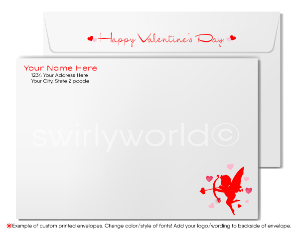 Printed Valentine cards come on premium matte stock greeting card paper, ensuring a refined look and feel that reflects your brand’s quality. Choose between a sleek single-panel flat card or a classic folded Valentine card option, both including matching white envelopes. Upgrade to custom imprinted envelopes featuring your business name, return address, and coordinating design elements for added professionalism.